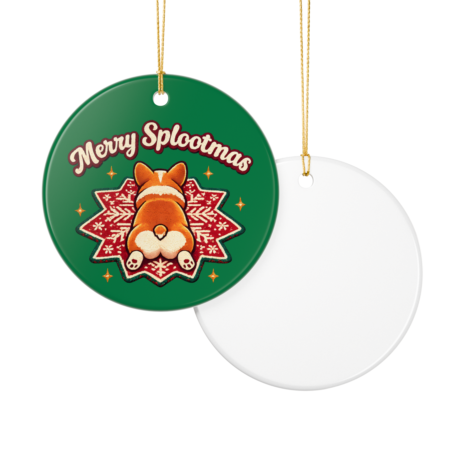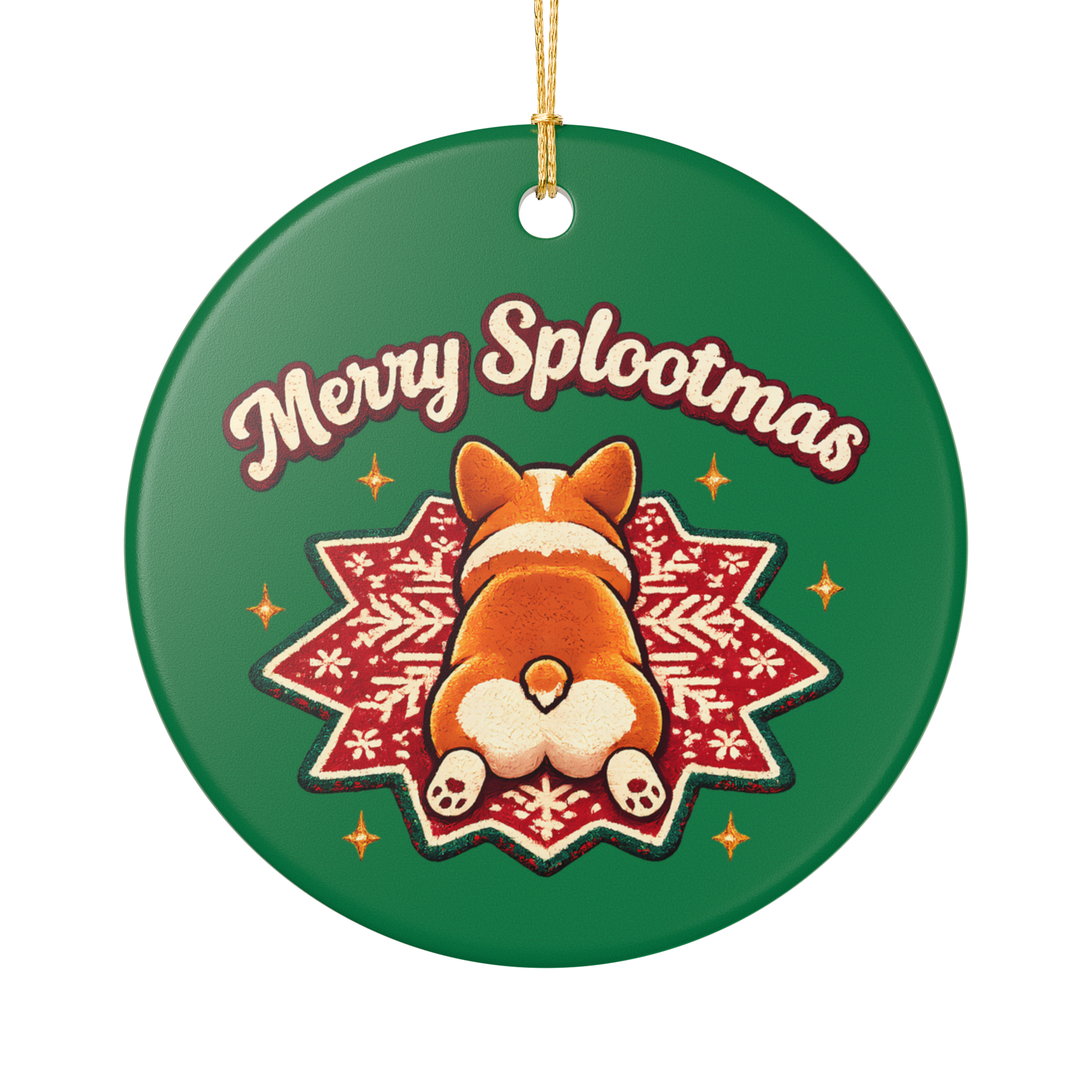 Ceramic Ornament — 'Merry Splootmas' Corgi Holiday Decoration