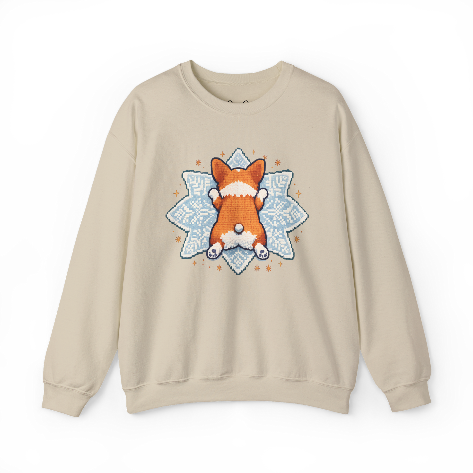This cozy crewneck sweatshirt brings a quiet, playful charm to slow mornings and lazy weekends. A soft canvas frames a sweet illustration of a corgi’s fluffy rear set against a delicate snowflake — a little moment of whimsy that reads like a private joke between you and your day. The mid-weight cotton/poly blend and classic crew cut drape easily over jeans or lounge pants. Built to last, it features reinforced double-needle stitching and a smooth tear-away label so nothing distracts from comfort. Wear it while making coffee, walking the dog, or curled up with a book — it settles into everyday life like an old favorite.