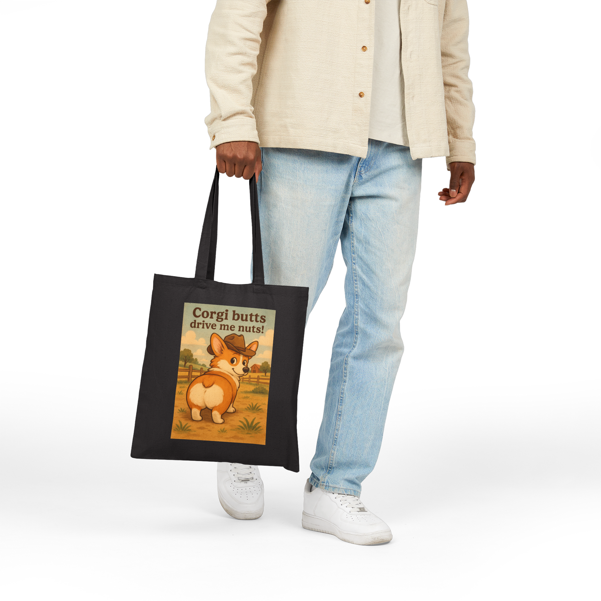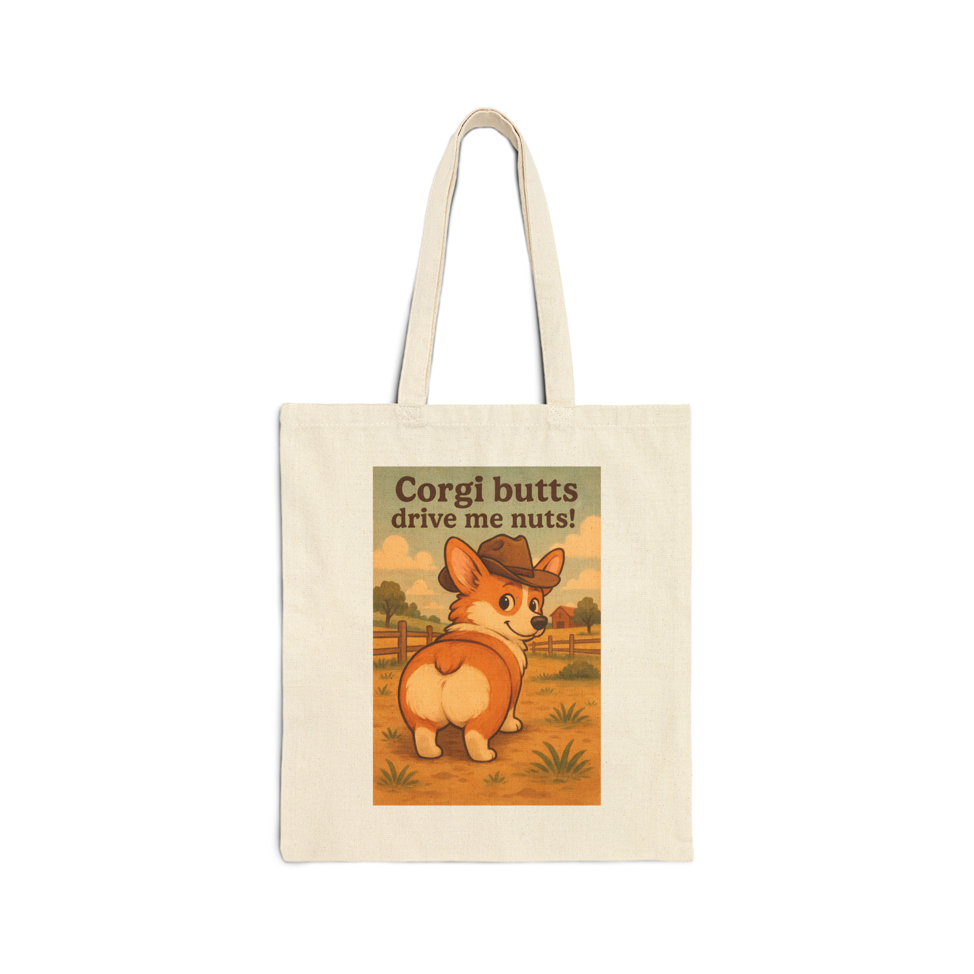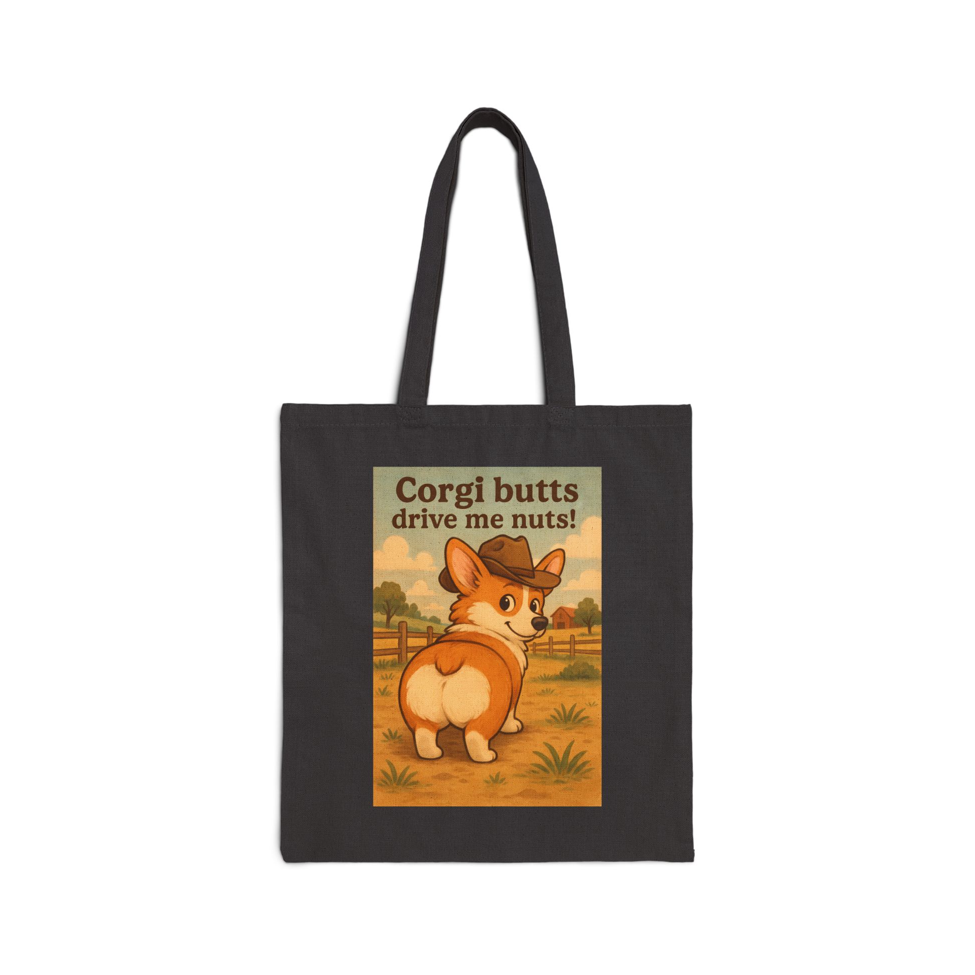 Tote Bag — "Corgi Butts Drive Me Nuts" Cute Retro Corgi Canvas Tote